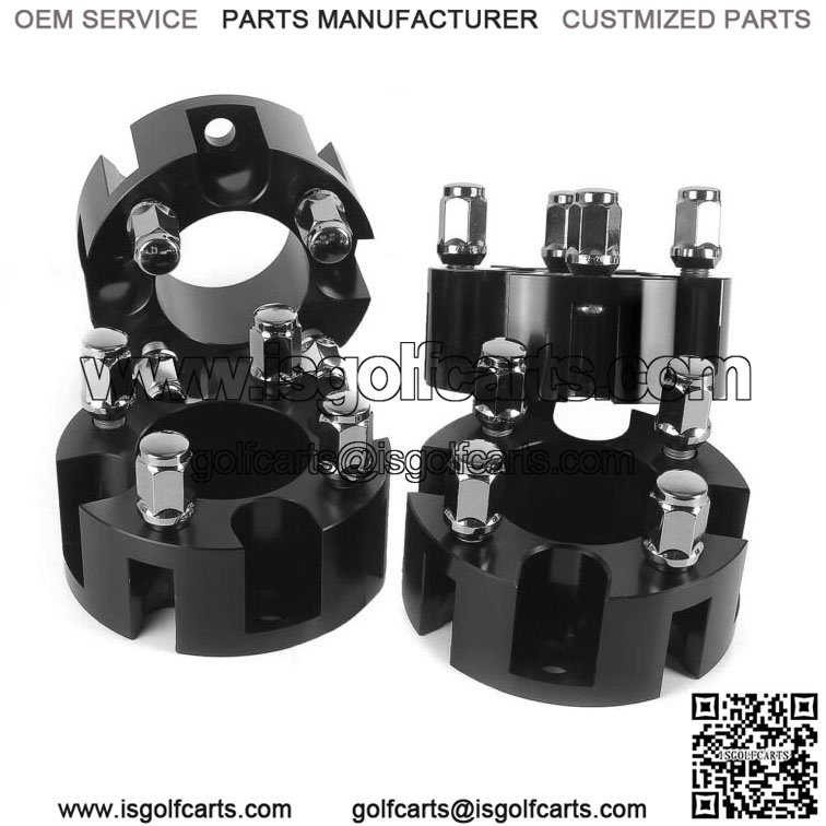2 inch Golf Cart Wheel Spacers for EZGO Club Car Yamaha 4 Pack, Black-2 Inch wheel spacers for EZGO, Club Car & Yamaha golf cart, add 4 inches to the wheel axle track to allow for larger, wider or higher traction tires/rims/wheels and a more aggressive look. – Golf cart wheel spacers made of quality CNC-machined aluminum, light weight, durable and strong. The kit will add 4 inches to the wheel axle track to allow for larger, wider or higher traction tires/rims/wheels.- Size: 2″ (50mm) thickness, 4 x 2.8″ (72mm) bolt pattern, 3.68 ” (68mm) hub center bore, and 16 pcs 1/2″-20 external nuts (internal use of original nuts).- Easy to install: A torque wrench(not included) is all you need to finish the installation. Note: Never use air tools or impact wrenches. Black golf cart wheel spacers specification:Thickness: 2″ (50mm)Bolt Pattern: 4×2.84″ (72mm)Hub Center Bore: 3.68″ (68mm)Nut Thread Size: 1/2 x20Material: Aluminum, ChromePackage Included: 4 x wheel spacer, 16 x lug nuts PLEASE READ CAREFULLY BEFORE ORDERING:Ensures CompatibilityBolt Pattern: Check you bolt pattern fits 4×2.84″(72mm)Central Hole: You hub’s central hole must be same or smaller than 2.68″(68mm)Stud Length: Your cart’s wheel studs must be shorter than 2″(50 mm). Make sure the wheel studs/lug nuts are not in contact with the rear of the wheels. You can grind the nuts shorter or replace them with shorter nuts.Clearance of the Fender: The thickneof the 4 lug wheel spacer should be lethan the fender clearance for vehicles without lift kit.Please use a torque wrench and tighten the nuts in a professional installation sequence. Be aware of the angle of the nuts.Please check and re-torque all hardwares after 25-50 miles.