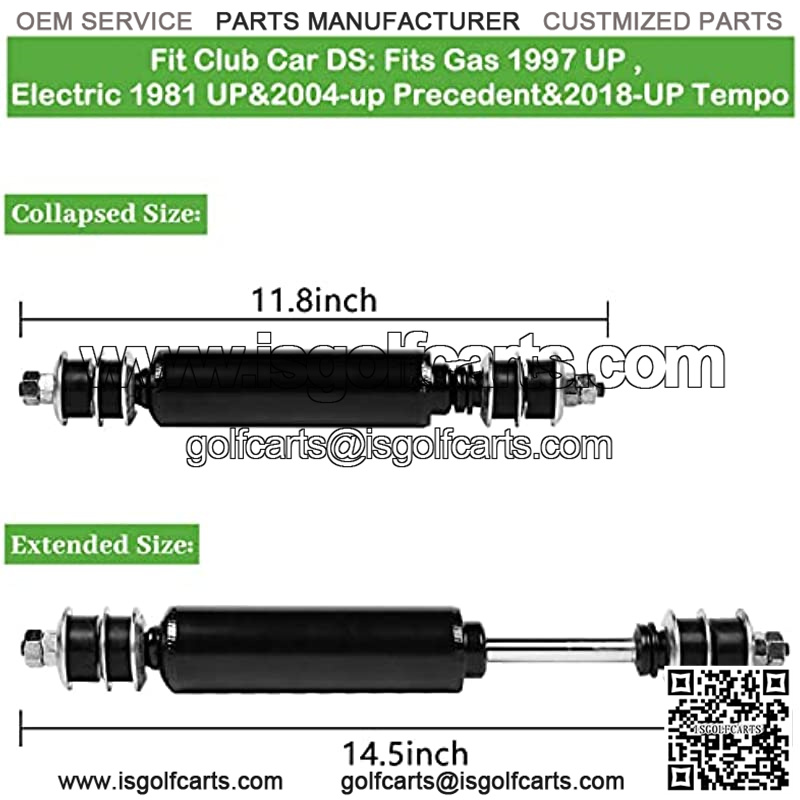 Rear Shocks for Club Car DS: Fits Gas 1997+ , Electric 1981+, Bushings are included.