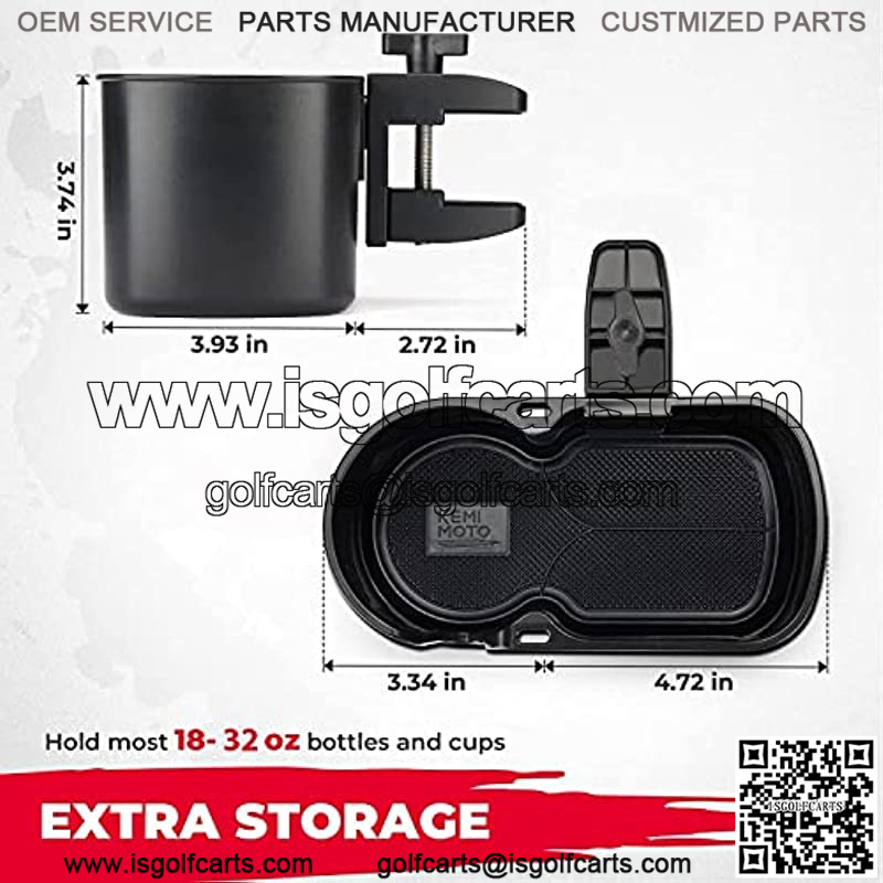 Compatible with Club Car, EZGO, all models and years.Fit most 18-32oz bottles, including travel mugs.Compatible with Club Car, EZGO, and Drive all models and years.Suitable for the golf cart, office table, and PONTOON boat.Suitable for vertical, horizontal, and sloping railings.A great gift for people who have a plan to go outdoors.