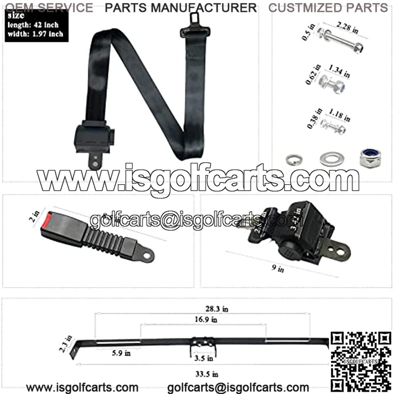 SAFETY PROTECTION – Golf Cart Belts Bracket Kit size: 33.5″ x 2.3″; The black retractable style seat belts could extends 42″. Suitable for any size of people. It can protect the driver and passengers in the seat on the damage caused by the second collision when the car encounters an emergency or emergency braking.