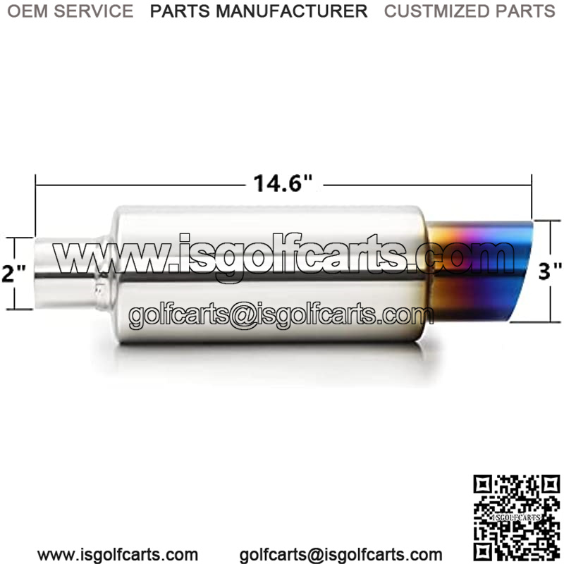 2″ Performance Muffler, 3″ outlet N1 Burnt, 14.6″ overall length Exhaust Tip.