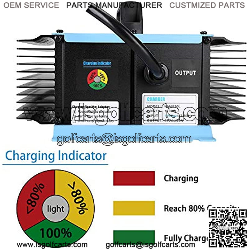 For Club Car Golf Cart Battery Charger 48v Round 3 Pin Plug 10A with OBC bypass
