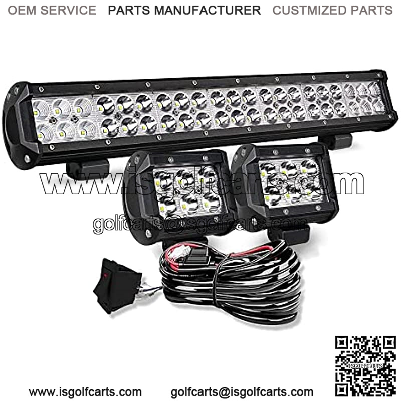 20 Inch LED Light Bar 126W Spot Flood Combo LED Bar 2PCS 4Inch Spot Pods Cubes with Rocker Switch Wiring Harness