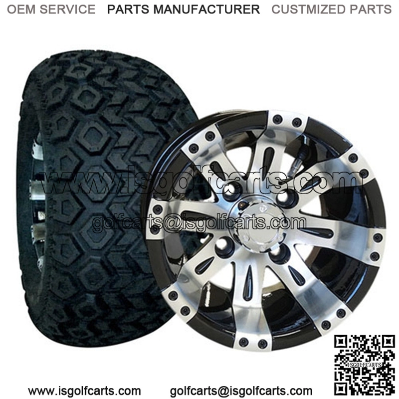 This 10″ Golf Cart Tire & Wheel Combo (pre-mounted tire) is for offroad use on ALL GOLF CARTS (LIFT KIT MAY BE REQUIRED – SEE BELOW). Club Car & Yamaha (not Drive) 3″-4″+ lift kit is recommended to prevent rubbing. You will NOT need a lift kit for the following: EZGO TXT or RXV (2007-NEWER) EZGO TXT or MEDALIST (1994-2006) May require some minimal body cuts, but still no lift kit required Yamaha Drive (G29)