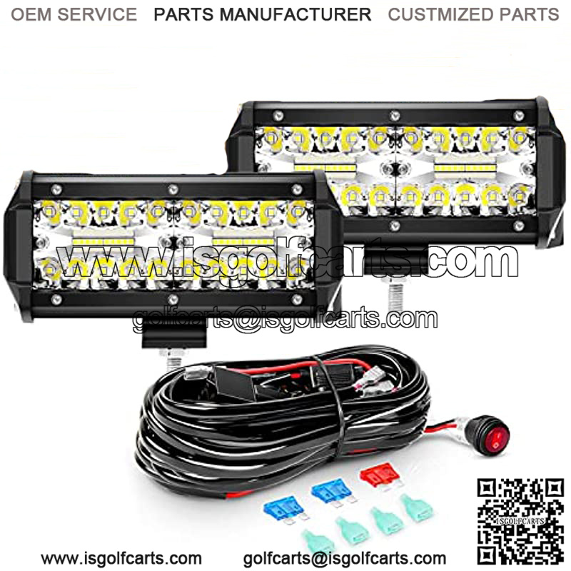 2PCS 6.5 Inch 120W Triple Row LED Pods Flood Light Bar Fog Light Driving Lighting with 16AWG Off Road Wiring Harness-2 Leads for Truck Golf Cart SUV ATV UTV Boat