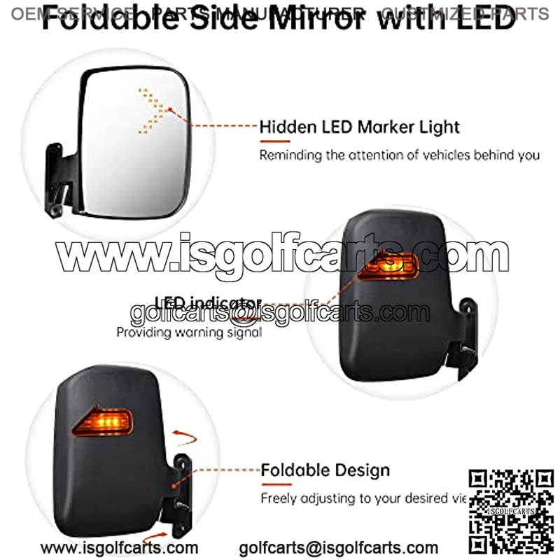 2pcs Universal Golf Cart Rear View Folding Side Mirror with LED Indicators Compatible with EZGO Club Car Yamaha