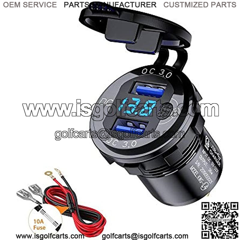 3.0 USB Quick Charger Socket, 12V/24V Dual USB Charger Socket with Switch On/Off and Waterproof LED Digital Voltemeter for Marine, Boat, Motorcycle, Truck and More (Blue)