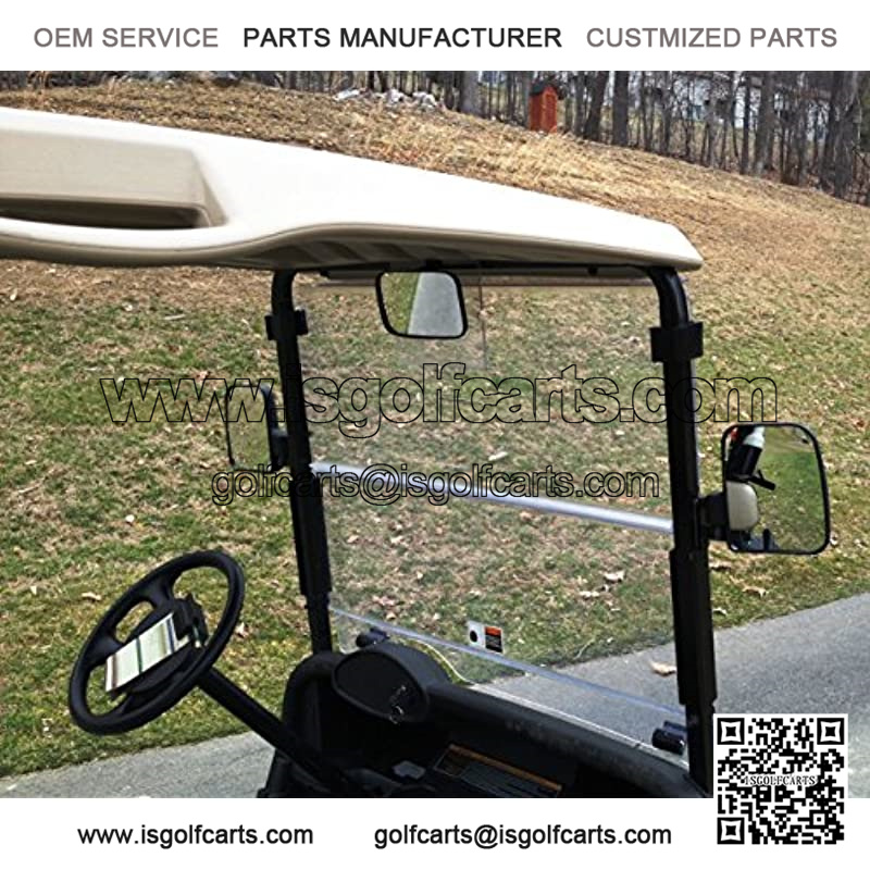 Center rear view mirror mounts with a metal bracket to your golf cart.