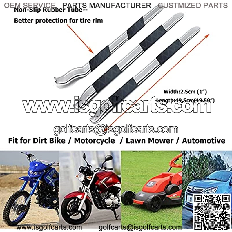 Mount and Demount Iron Tire Lever for motorcycle tires,dirt bike tires,lawn mower tires,atv tires,utv tires,especially better to use for the big tires. The straight one provides excellent leverage for those tough and big tires and the curved one is designed to use using on tire charger.