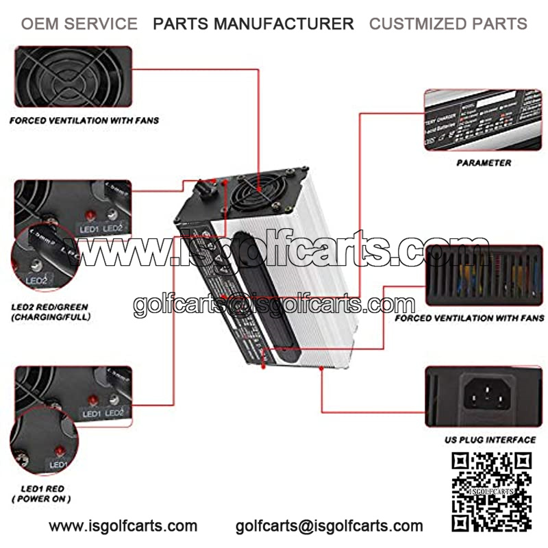 Efficient and eco-friendly: Conversion efficiency of this golf cart charger is greater than 88%; Accurate constant current control, current varies less than 5%.
