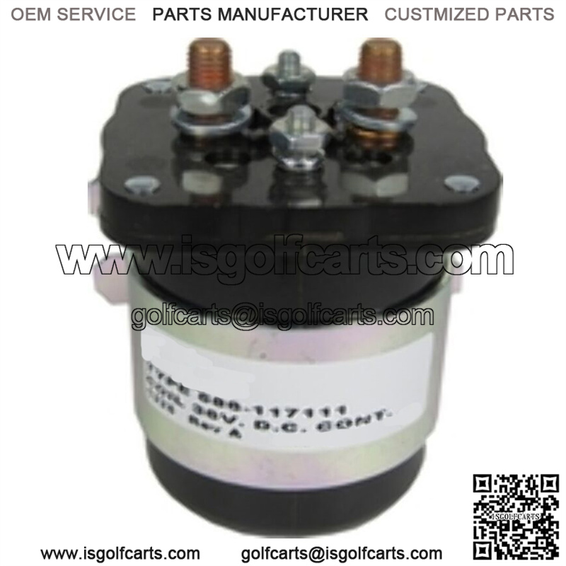 EZGO 36-volt heavy duty solenoid, 4 terminal, #586 series solenoid with silver contacts. For EZGO electric 1989-up with solid-state speed controls or high amperage golf cart models. This solenoid is highly recommended for carts with motor/controller upgrades.EZGO 36 volt heavy duty solenoid
