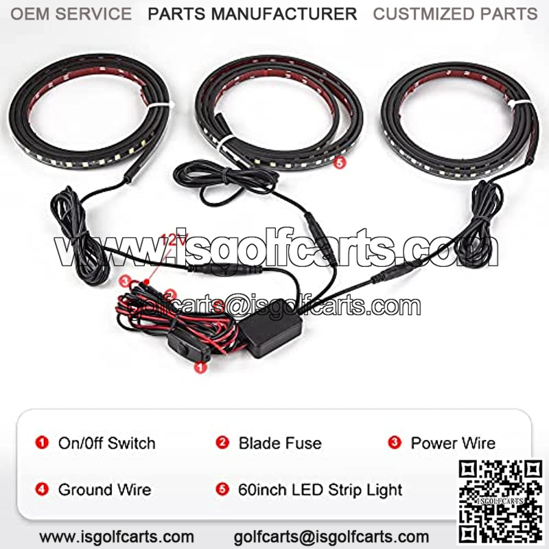 3PCS 60 Inch White LED Truck Bed Light Strip Replacement for Truck Pickup Bed RV SUV Cargo Boat Waterproof Lighting Strip Kit Tailgate Light 12v with On-Off Switch