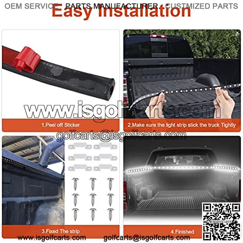 4.EASY INSTALLATION: truck bed lights strip comes with self-adhesive tape, no drill, only remove the red paper covering and stick it to anywhere. It can easily install under your truck bed rail, also used for cargo/pickup/camper/garage/RV awning lighting or household party decorations.