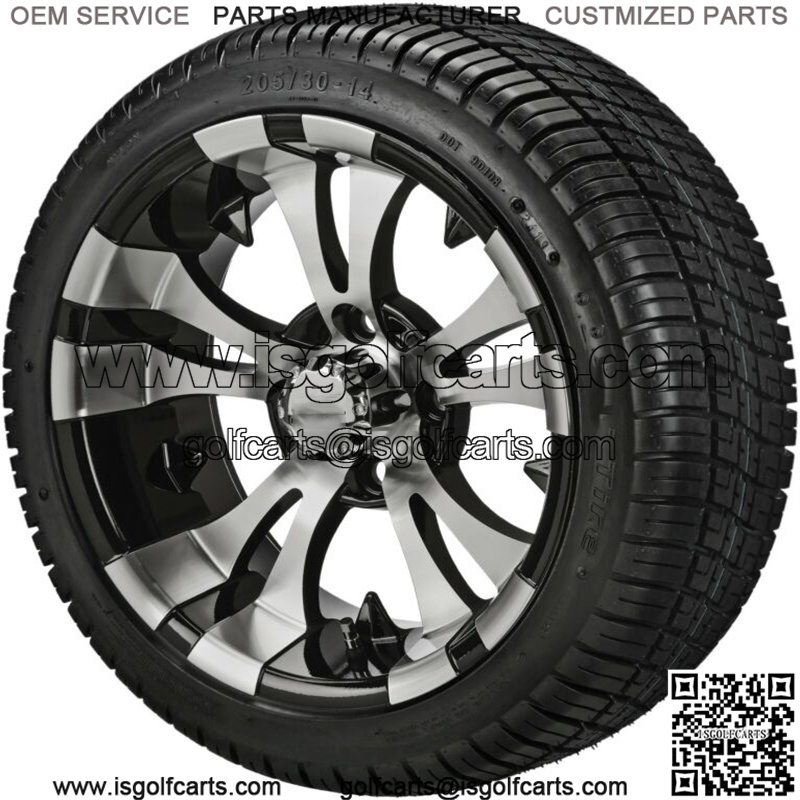 4 Golf Cart 205/30-14 Tires on a 14×7 Black/Machined Vampire Wheels Free Freight