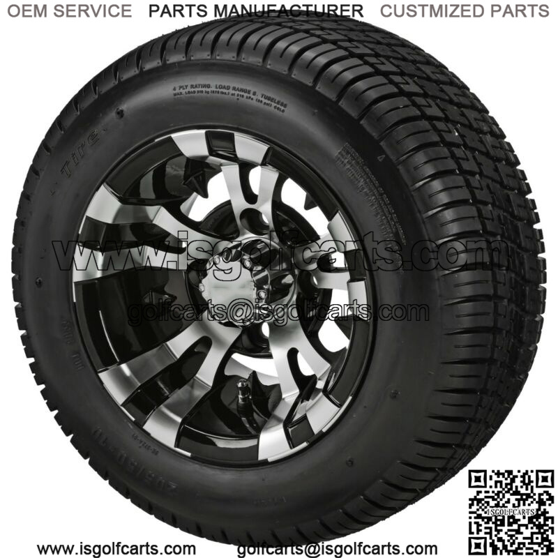 4 Golf Cart 205/50-10 DOT Tire on 10×7 Black/Machined Vampire Wheel Combo