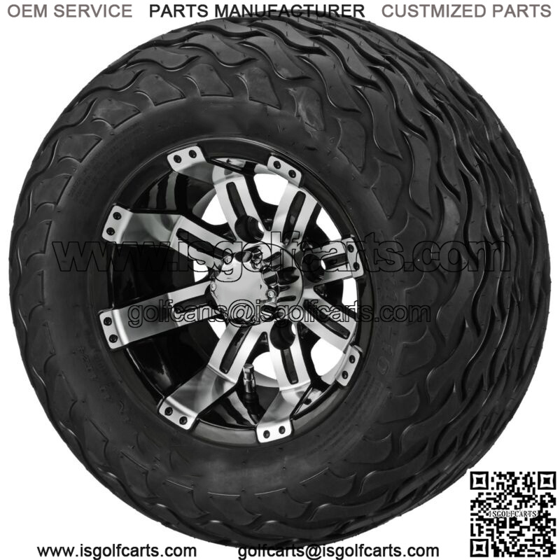4 Golf Cart 20×10-10 Lightning Tires 10×7 Blk/Machined Wheels