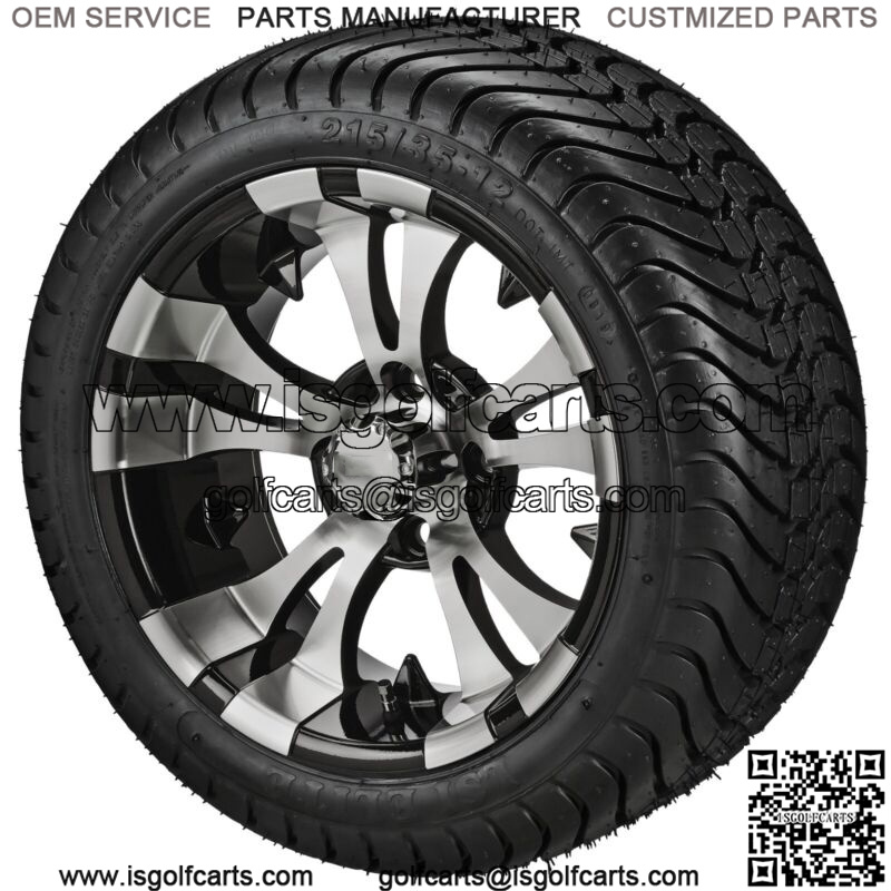 4 Golf Cart 215/35-12 LSI Elite Tires on 12×7 Black/Machined Vampire Wheels