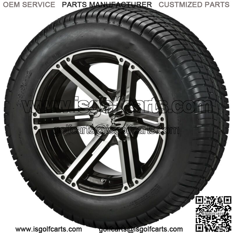 4 Golf Cart 215/50-12 Tires on 12×7 Black/Machined Yukon Wheels