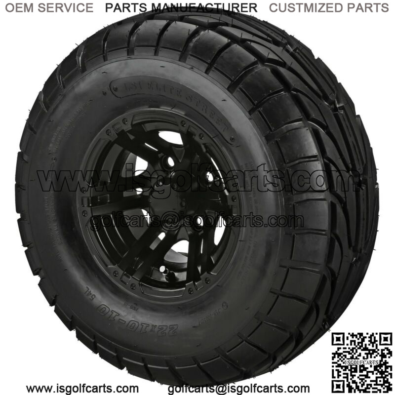 4 Golf Cart 22×10-10 Street Tires on 10×7 Matte Black Yukon Wheels