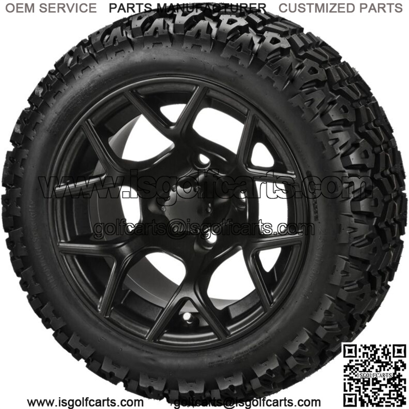 4 Golf Cart 23×10-14 All Terrain Tires on 14×7 Matte Black Ninja Wheels