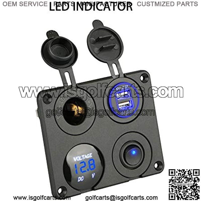 4 in 1 Multifunction Panel Power Outlet Socket Charger with 12V Cigarette Socket, Blue Digital Voltmeter, Double USB Power Outlet Socket, ON-Off Toggle Switch