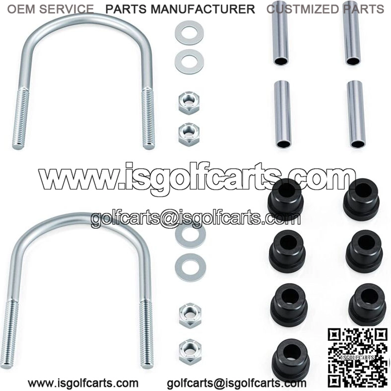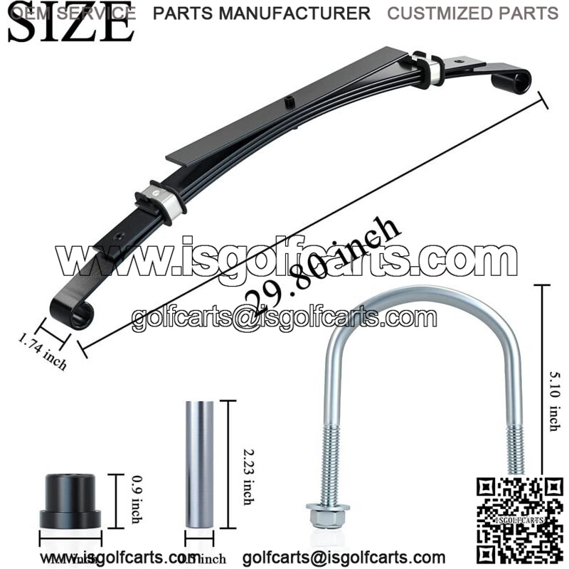 4-Leaf heavy duty rear leaf springs kit fit for 1982-up Club Car DS gas & electric golf carts;- Club Car DS rear leaf spring Made of carbon steel, durable and elastic, allows your cart to perform better with the added weight of passengers or cargo;- Sturdy 4-leaf design, ideal for using on vehicles with a rear seat kit, lift kit, heavy off-road use, and when adding any weight to your vehicle.- Coated with anti-rust coating, About 15% thicker than most oem and aftermarket springs on average.- Golf Cart rear leaf spring package includes : 2 x Rear leaf springs(OEM#1014675 102006501, 1011149, 1012618), 4 x metal spacers(OEM#1012303), 8 rubber bushings(OEM#1015583), 2 U-bolts(OEM#1012180).- Provide 100% satisfaction guarantee, 1 year refund or replacement!