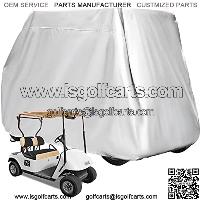 4 Passenger Golf Cart Cover Fits EZGO, Club Car, Yamaha, 400D Waterproof Windproof Sunproof Outdoor All-Weather Polyester Full Cover with Backside Zipper Doors – Grey/Sliver