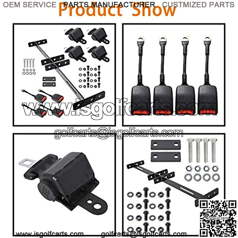 4 Retractable Golf Cart Seat Belts and Bracket Kit Replacement for Golf Carts EZGO Yamaha Club Car