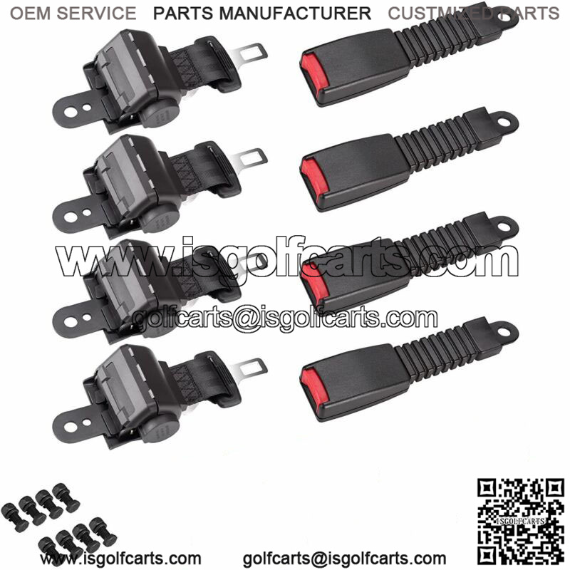 4 Retractable Golf Cart Seat Belts for EZGO Club Car Yamaha Adjustable Lab Belt