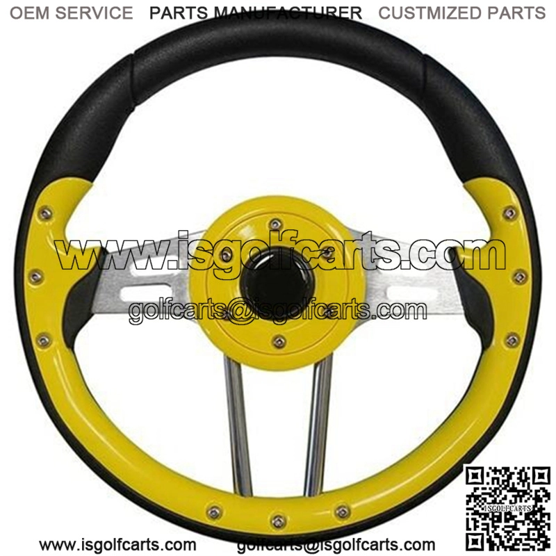 Golf Carts Steering Wheel – 4, 13″ Diameter (Yellow Grip/Black Spokes) 13″ Diameter Custom Steering Wheel. Style: 4.