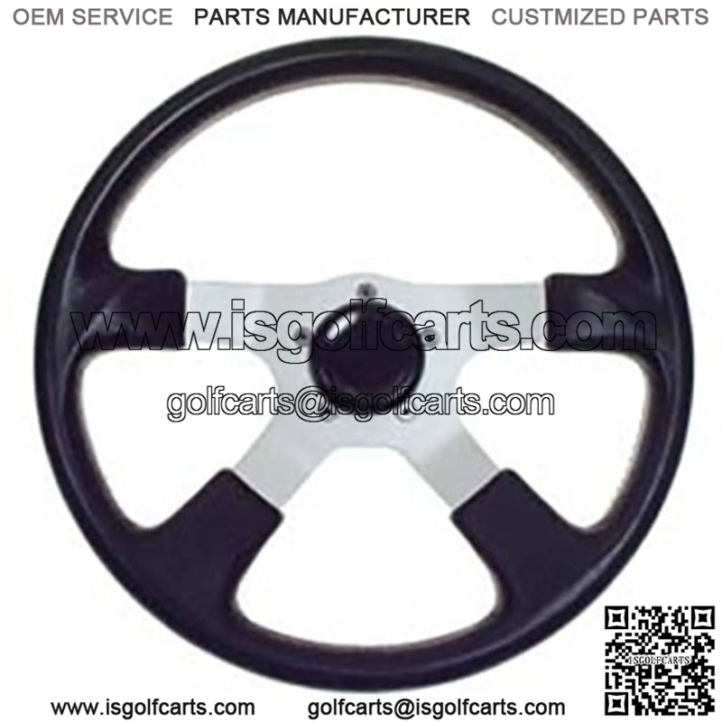 4 golf cart steering wheel 4 Silver anodized spokes with black grip Uses model specific adapter (sold separately) Center cap included This 4 Steering Wheel comes in Black Grips with Silver Anodized Spokes. Fits all golf carts.