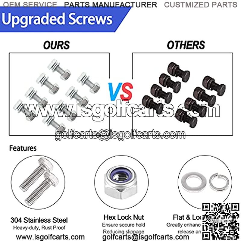 [Upgraded Material & Design] Upgraded screws are made from great material 304 stainless steel, with excellent anti-rust and corrosion resistance properties, and won??t slip out easily, thus providing a long-lasting service life. Compared with 2 holes iron sheets, 3 holes Black iron sheets design suits more golf carts.