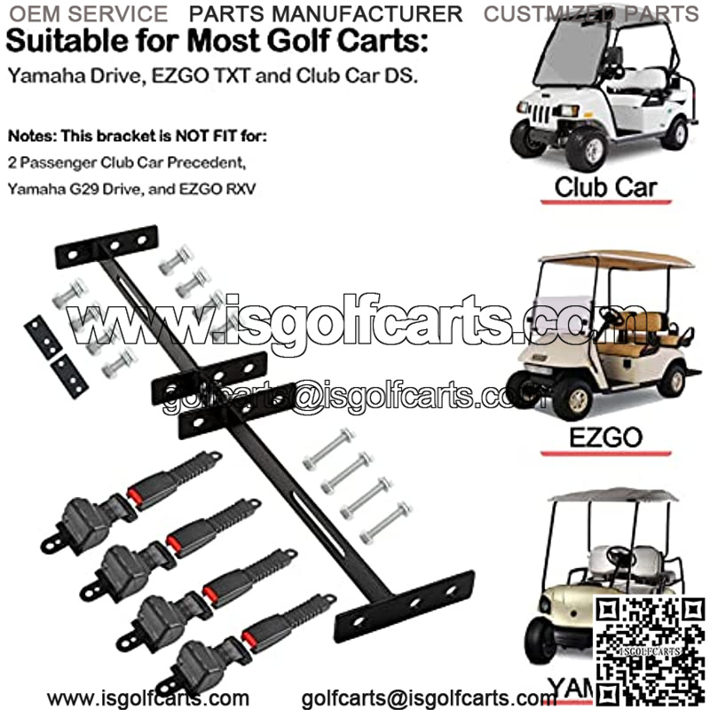 [Wide Application] golf cart seat belts suitable for EZGO TXT, Yamaha Drive, and Club Car DS, if the original factory is a 4-seater golf cart, it is not applicable. Warm Tips: NOT FIT for 2 Passenger Club Car Precedent, Yamaha G29 Drive and EZGO RXV.