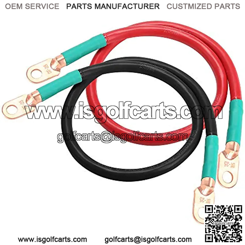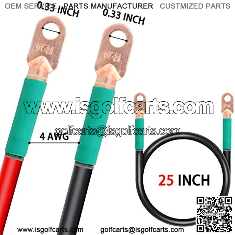 4AWG 25 inch Battery Inverter Cables Set for Car, Marine, Motorcycle, RV, Golf Cart, Solar (1 Black & 1 Red) – 4 Gauge 2 Feet with 5/16 Ring Terminals