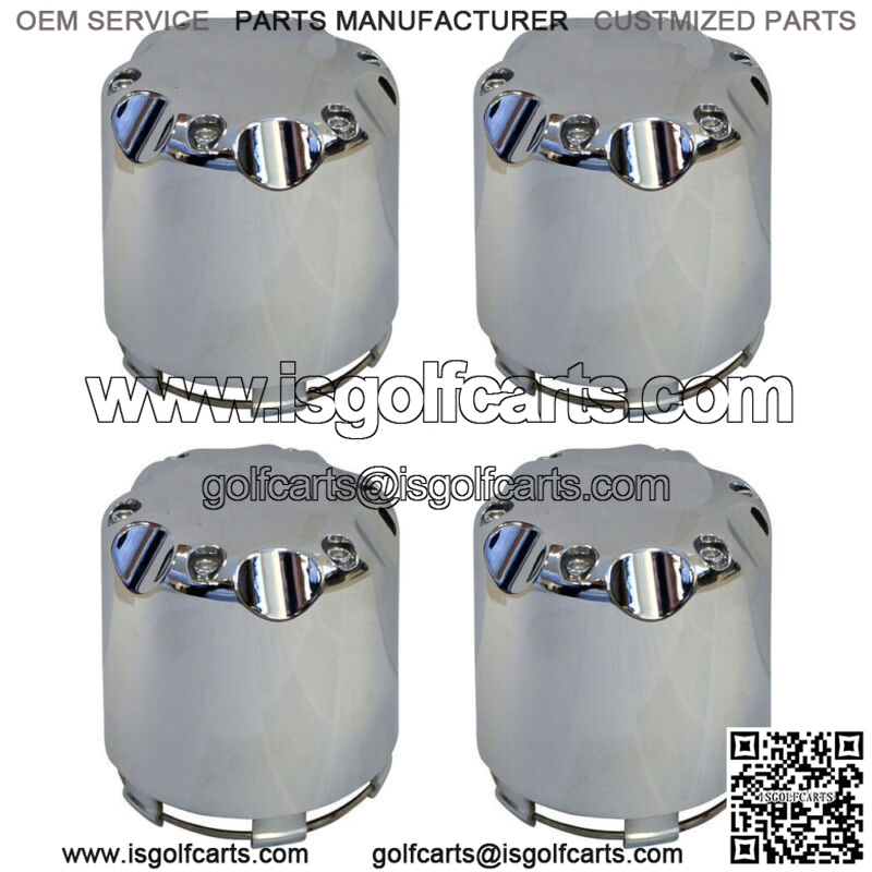 4X Alloy Center Hub Cap Push in Style Chrome SS Center Caps for Golf Cart Wheel