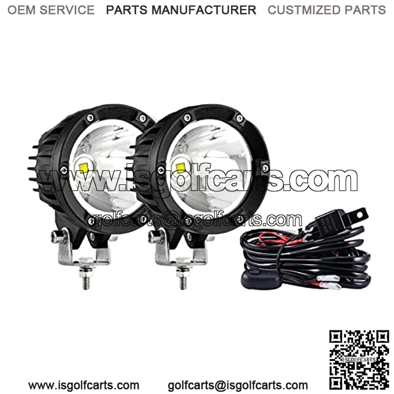 4In 72W Round Led Offroad Light, 2PCS 7200LM Spot Light Pod with Wiring Harness Kit Super Bright Led Pod Lights White Round LED Pods for Truck Jeep Motorcycle SUV ATV UTV Wrangler