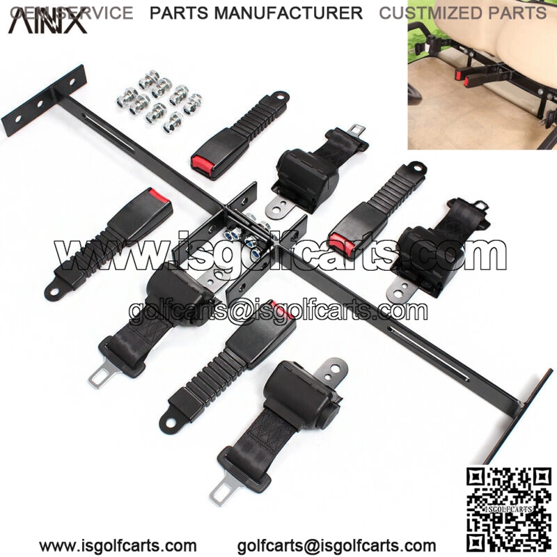 Features:Suitable for golf carts, as follows:TXT&RXV of EZGO, Yamaha Drive, or DS of Club CarOne bracket accommodates four seat beltsDesigned to work on front and rear seats without multiple bracketsPerfect for 4 passenger golf cartSpecification:Bracket size: 34.3″L x 6.7″WRetractable belt length: 42″Notes:This bracket will not fit Club Car Precedent or Yamaha G29 DrivePackage Content:2x Bracket4x Seat belts with buckles4x Screws (for bracket)8x Screws (for belt)2x Black iron sheets