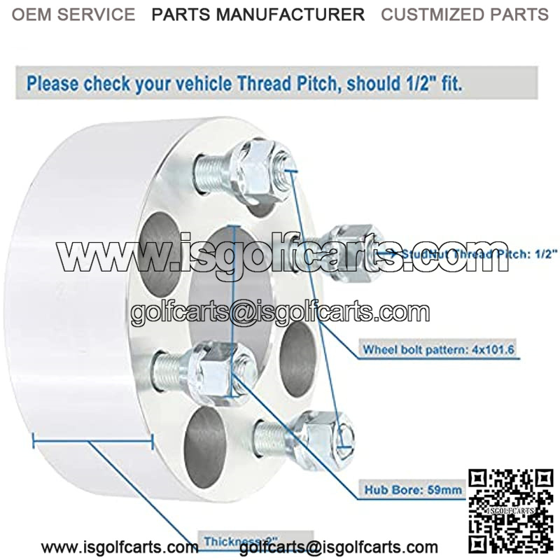 4X 2 inch 4×4 to 4×4 4 Lug Wheel Spacers 4×101.6mm to 4×101.6mm 1/2″ Studs 59mm CB fits for EZ GO EZGO Club Car for ATV Go-lf Cart