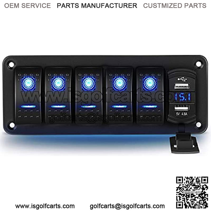 Multi-function designed: this switch panel is integrated with 5 rocker switches and 4.8A dual USB charger with voltmeter. suitable for most 12v-24v dc cars, utvs,atvs, trucks, trailers, rvs, caravans, buses, marine boats, yachts etc.