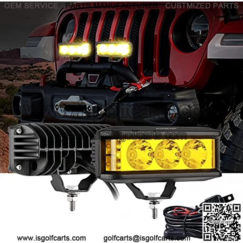 ??DOUBLE SIDE SHOOTER DESIGN??Both left and right equipped with side lamps, compared with the ordinary light bar, lighting range will be increased by 2 times. Reduces road hazard in blind spot, perfect for off-road driving at night??SMALL & SUPER BRIGHT??These LED pod only 5″, each load with 3 pcs high-Intensity LEDs, provide 3200K bright cool yellow spot light, 68W 6800LM output. Spot flood combo beam for widespread and long distance illumination??PREMIUM QUALITY??Built in IP68 waterproof, adopts upgraded waterproof die-casting aluminum housing and advanced sealing technology to withstand any harsh environments and weather conditions. Also, our lights are with built-in no electromagnetic interference (EMC), resolve the issue of radio interference and flickering??Excellent Efficient Cooling??12 main fins and 8 auxiliary radiators, maximize surface area for efficient cooling, well enhance long lifespan up to 50,000 hours. The durable U shape stainless mounting brackets can be adjusted to change