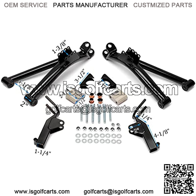 ??Description??A 6″ lift kit allows you to install up to a 23″ tire on your cart . (Heavy duty rear springs are recommended if the cart is heavily weighted to prevent rubbing with 23″ tires). Also, this lift kit has been quality-tested and helps to protect against rust.
