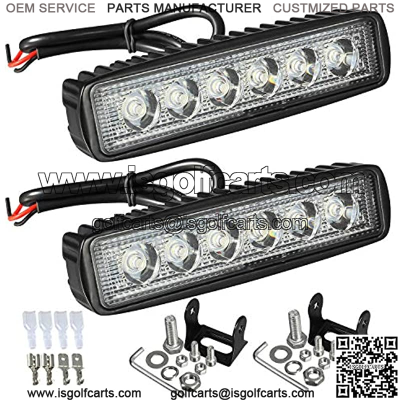 Super Bright: 6pcs High Power Chips+HD Lens helps to focus the light in front of your vehicle,more safe. 18W/Each. 350LM per light. Extreme Weather Resistant: Sealed Beam design with Heavy Duty Aluminum housing ensure the light work in good performance even in fog,rain or snowy weather Excellent Heat Disspation: Fully aluminum housing and vertical cooling fin are designed for maximum heat dispersion,efficiently prolong the lights life span 180?? Beam Adjustble Mounting Bracket helps to meet your different angle requirement, more convenience. Unviersal application: fit for Jeep, 4×4, Car, ATV, UTV, SUV, Truck, Trailer, Forklift, Train, Boat, Bus, Outdoor lighting,lawn mower lights,etc.