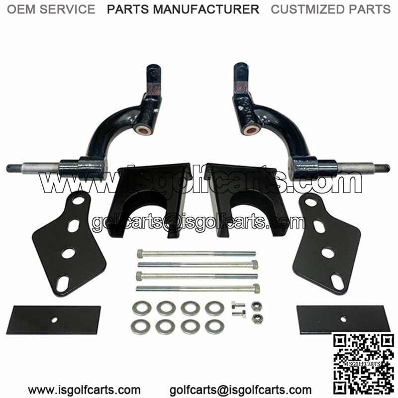 Precedent / Heavy Duty 6″ Drop Spindle Lift Kit for all gas and electric golf carts. This lift kit will allow your cart to comfortably fit up to 23″ tires on your cart.Kit includes front and rear lift parts with no cutting or welding necessary!Fits: ALL Onward, , PrecedentLift Kit Height: 6 inch lift, Spindle Lift KitTire Sizes: Up to 23″Construction: All Alloy Class 8.8 high strength hardwareProof load: 85,000psiTensile Strength: 120,000psiWarranty: 4 year factoryFinish: Black Powder Coating (not paint/no wear) Fits: ALL Precedent, Onward, and model golf carts 2004+ (Gas and Electric carts)PLEASE NOTE: THIS LIFT KIT CANNOT BE MOUNTED ON MODEL GOLF CARTS.This lift kit includes: All hardware and risersDetailed step-by-step installation guideWorks great with our any of our lifted golf cart wheel and tire combos on up to 23″ tires!