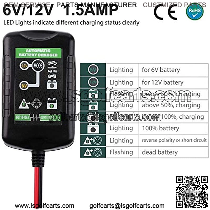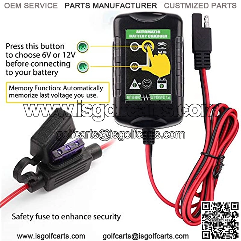 6V 12V 1.5A Trickle Battery Charger, Universal Power Battery Maintainer for Car, Automotive, Vehicle, Motorcycle, Lawn Mower, Marine, Boat, Snowmobile, ATV, RV, SLA AGM GEL CELL Lead Acid Battery