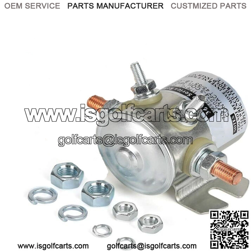 36 Volt 4 terminal SPNO heavy-duty solenoid for EZGO TXT / Marathon 1980-2010 electric golf cart.- Replaces part#: 70-120224, 11761GA, 11761-G1, 27855-G01, 27855-G02, 3016, 31680-G1, cole hersee 24080.- Acts as the conduit between the golf car battery and starter motor, provides the electrical energy necessary to activate the vehicle’s ignition system.- Make sure your small diode is in the correct direction with the line pointing to the positive side.- Same as original solenoid, the base must be fixed when assembling, clamping the ends of the wires between inner and outer nuts.