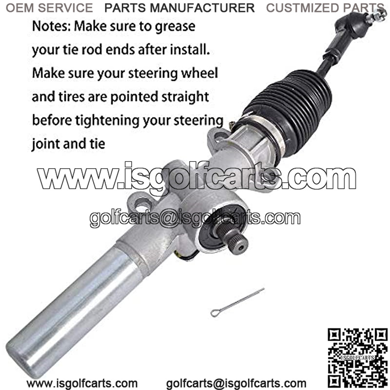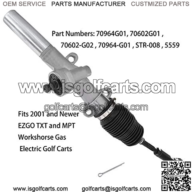 Fits for 2001 and Newer EZGO TXT and MPT and Workshorse Gas and Electric Golf Carts Fits for EZGO Models that have the Steering Gear Box Assembly Mounted to the Replacement for Part Numbers: 70964G01, 70602G01 , 70602-G02 , 70964-G01 , STR-008 , 5559 Notes: Make sure to grease your tie rod ends after install.Make sure your steering wheel and tires are pointed straight before tightening your steering joint and tie rod ends