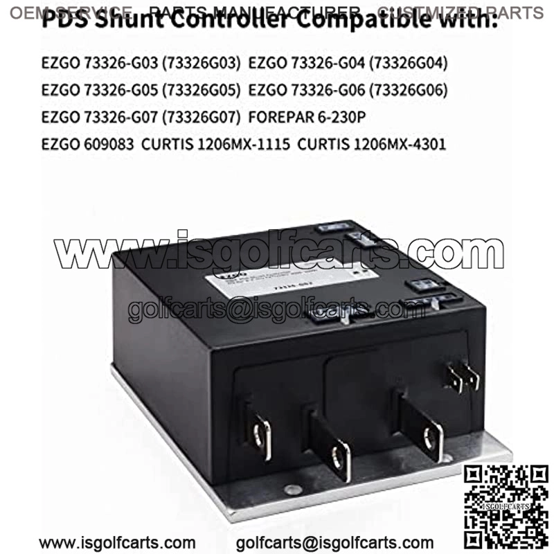 High Compatibility: Golf Cart Controller Part Fits EZGO 73326g02-07, FOREPAR 6-230P, EZGO 609083, CURTIS 1206MX-1115 and CURTIS 1206MX-4301Typical Application: Replacement for EZGO electric TXT (year 2000 – 2009) club car and golf cart, working with ITS throttleEngine Model: 36V 350A ITS Throttle Speed Motor Shunt ControllerWarranty: Our technical support and customer service teams are always here to address your concerns about our products.Note: Please make sure it is suitable for your motor controller. If you are not sure of its suitability, feel free to tell us your controller model number and we will help you to confirm.Product Description Key Features Compatible with: EZGO 73326-G03 (73326G03), EZGO 73326-G04 (73326G04), EZGO 73326-G05 (73326G05), EZGO 73326-G06 (73326G06), EZGO 73326-G07 (73326G07), FOREPAR 6-230P, EZGO 609083, CURTIS 1206MX-1115, CURTIS 1206MX-4301 EZGO Part Number: 73326-G02 (73326G02, replacing CURTIS 1206MX 350A controller) Fits EZGO TXT (year 2000 – 200