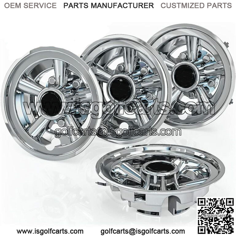 8 Inch Golf Cart Wheel Covers Hub Caps for EZGO Club Car Yamaha,Set of 4-Chrome- 8 inch golf cart wheel covers fit for EZGO, Yamaha, and Club Car golf carts. Notes: DOES NOT FIT EZGO RXV carts.- Golf cart wheel cover will Fit Most Factory 8 Inch golf cart Wheels.- Golf cart wheel center cap Made from premium durable ABS material with chrome plating procetechnology, they can replace the old faded wheel caps, an exciting way to add a stylish look to your golf cart;- For replacement with fast & easy snap-on installation, just snaps right in place without any tools. Bend the clips a bit before installing and you will not break a clip or crack a cover- This package contains a set of 4 golf cart wheel hubcaps- Easy to Install, just snaps right in place.