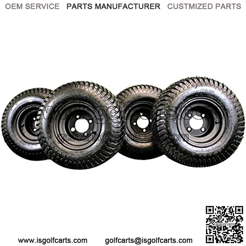 8″ MATTE BLACK STEEL GOLF CART WHEELS AND 18X8.50-8 TURF 4 PLY TIRES (SET OF 4) *Due to supply, we may substitute 18×9.50 tires*