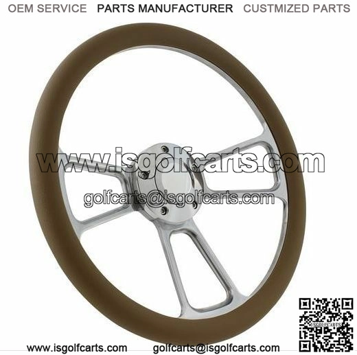 Polished Billet Matching Horn Button. – 14″ or 355mm Billet Tan Vinyl Half Wrap Steering Wheel. Horn Button. – Direct Fit 5 Hole Billet Adapter. Steering Wheel YES. Installation Adapter. – Club Car Precedent or XRT Series.